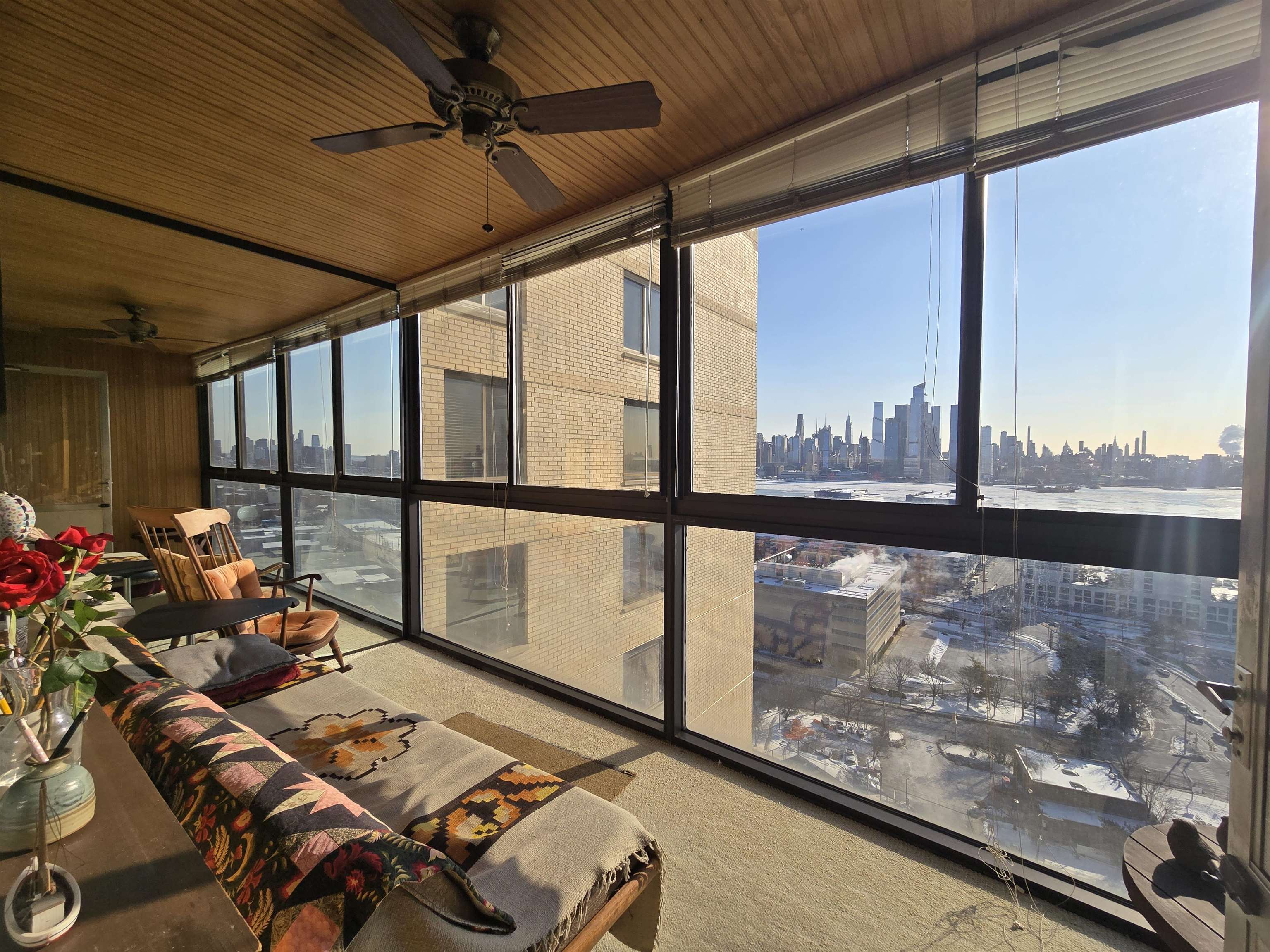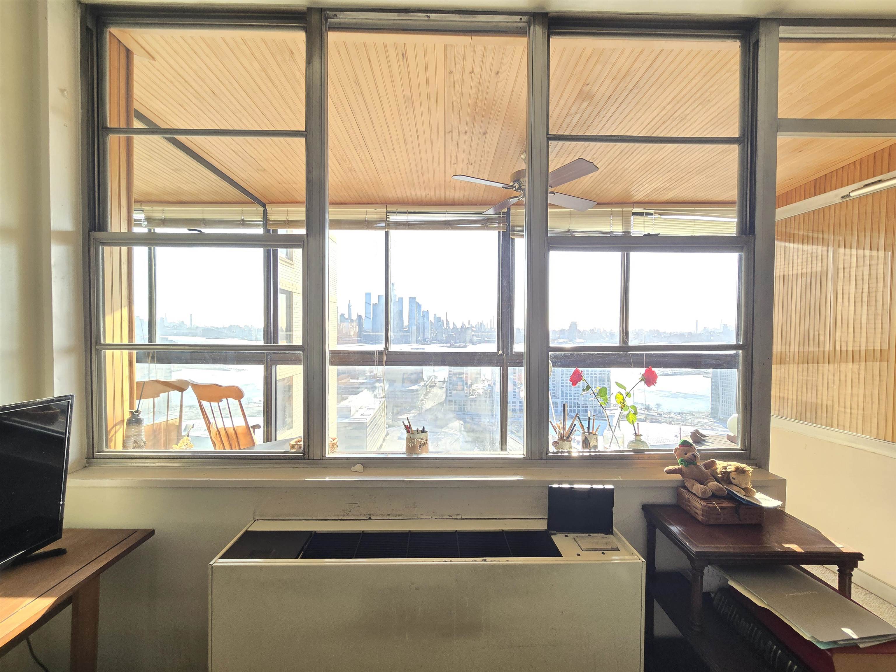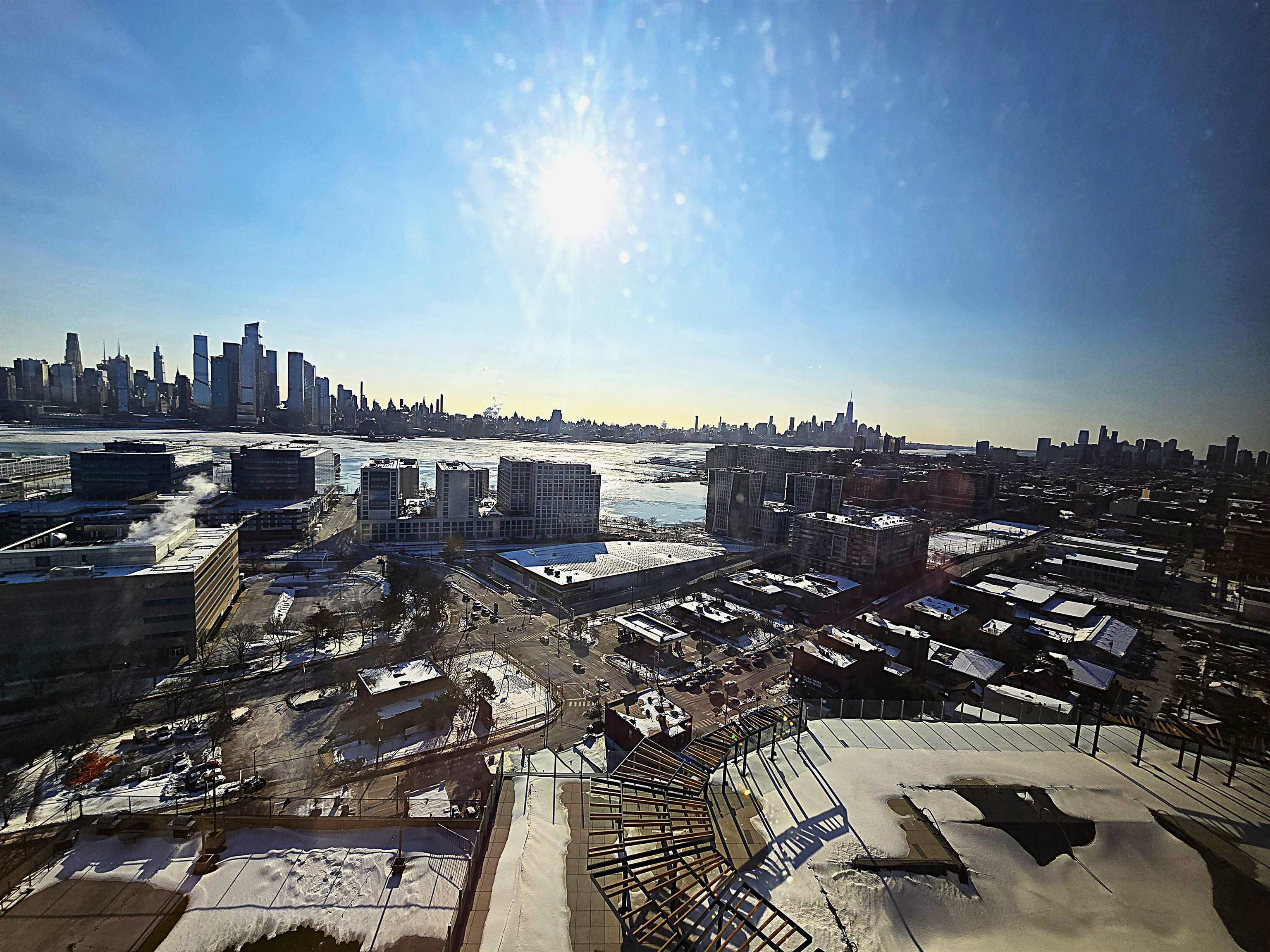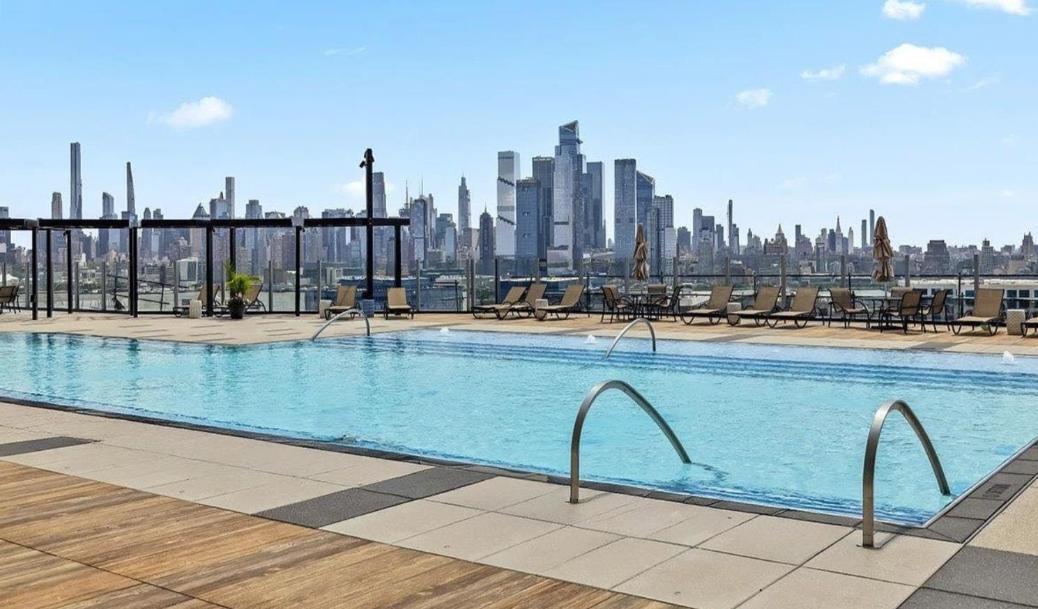 Step into this cozy 1 bedroom unit with stunning views of the NY skyline with East and South exposures from the living room and dining area, bedroom and large enclosed terrace for relaxing or entertaining. Newly renovated large "infinity"-style pool with a huge modern deck overlooking the entire New York skyline. Building comes with 24 hr. security, includes Concierge Service/Doorman, Amazon Hub in lobby area, laundry room on each floor with dry cleaning pick up and drop off service plus pet friendly. NYC Buses and Free PATH Shuttles to NYC during rush hours available right outside the building's front door/ Ferry to NY five mins away Area restaurants, stores, shops Maintenance includes: Real estate taxes, all utilities, premium cable tv including HBO and Showtime and high-speed internet. Minutes from the Lincoln Tunnel, Hoboken, parks, Whole Foods, Trader Joe’s, and great restaurants.